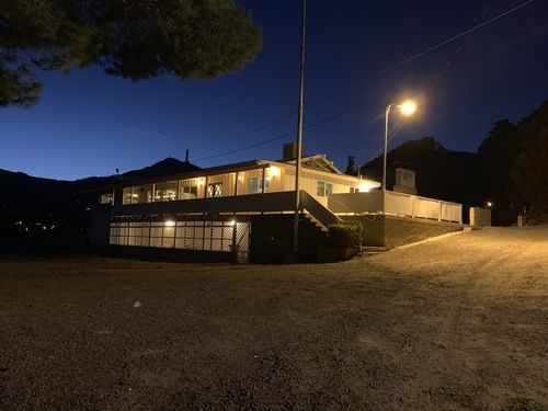 The property has one large main lodge room with a fire place, full kitchen, bar/game room area and plenty of seating to host various types groups and meetings. On the west facing building are five motel style rooms and across the courtyard on the east facing building are four bunk rooms and two large shared bathrooms facilities.